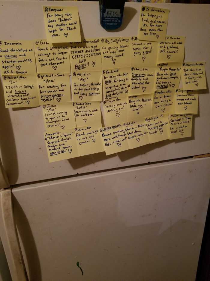 These kids, some of whom had so many self esteem issues, were finding positive things about themselves so they could get on the refrigerator. They were going out, trying new things, and telling me about them. Not just that, but they started nominating each other. Encouraging each other. Tagging me left and right to make sure I saw the accomplishments. I started carrying a notebook around with me so that even at work, I could keep up with messages.
